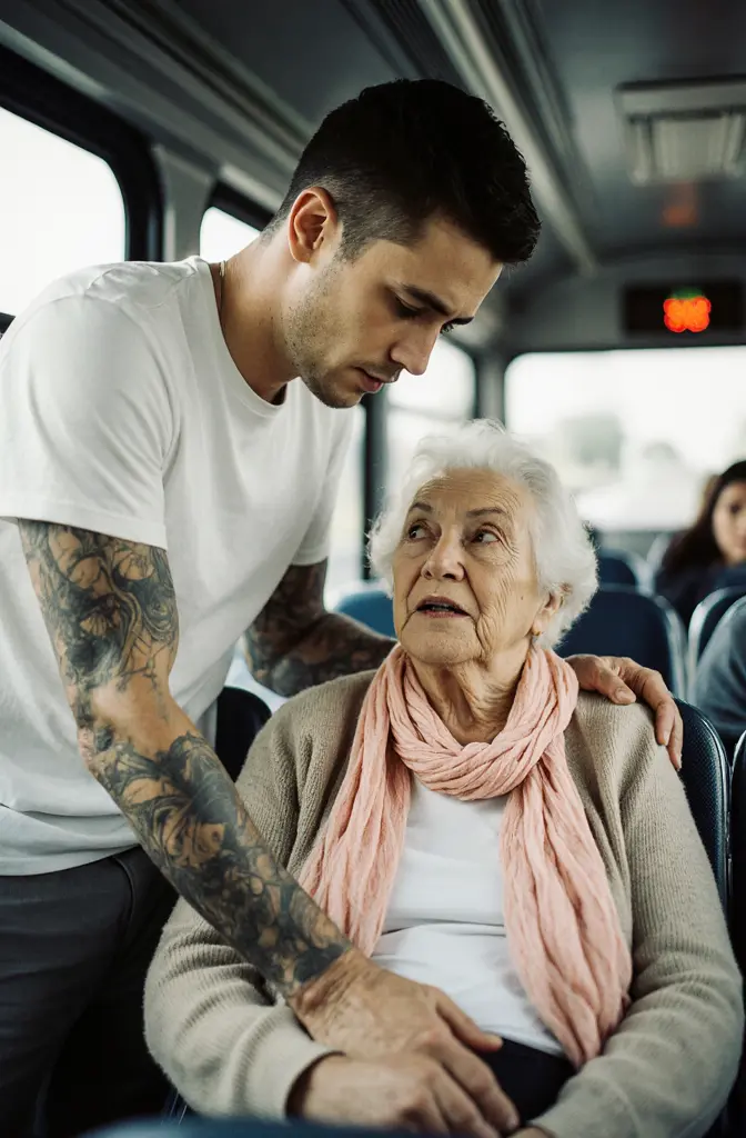 Le bus reprit sa route, mais une leçon invisible flottait dans l’air : la jeunesse pouvait être tatouée, silencieuse ou différente, mais derrière l’apparence pouvait se cacher un cœur qui bat avec courage, compétence et humanité. Le jeune homme reprit ses écouteurs, doucement, comme pour rappeler que ses tatouages et sa musique n’étaient qu’une partie de son histoire — pas la totalité.