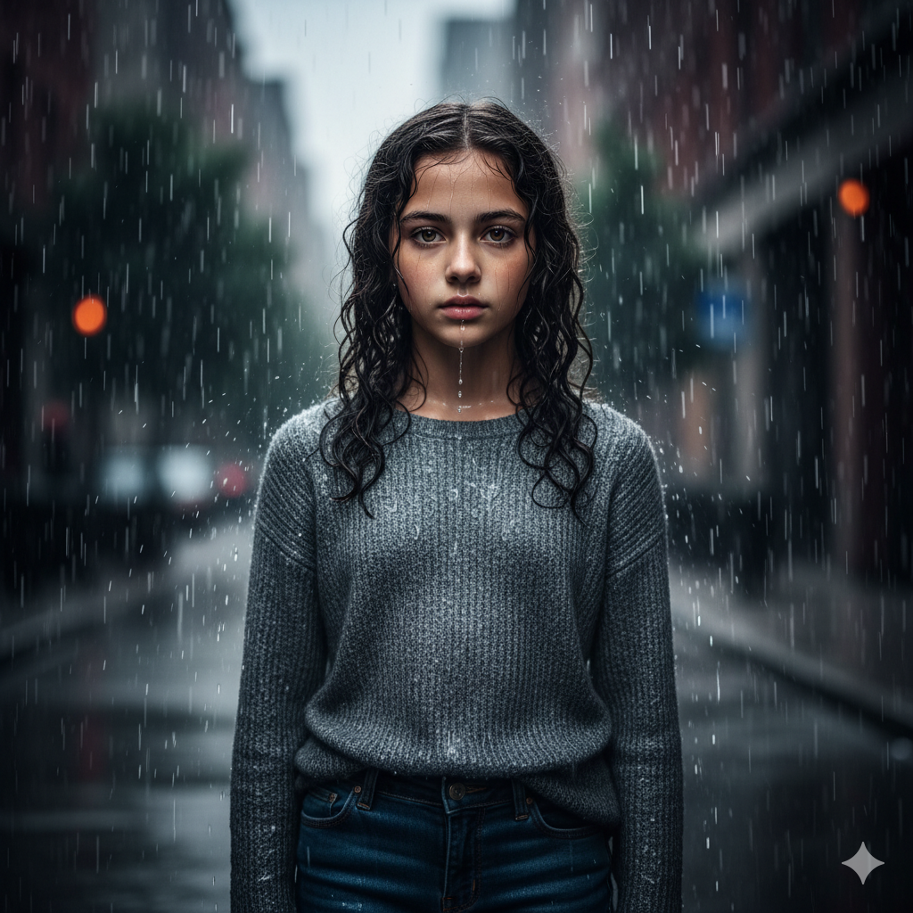 La petite fille, trempée mais immobile, lui tendit doucement la main :